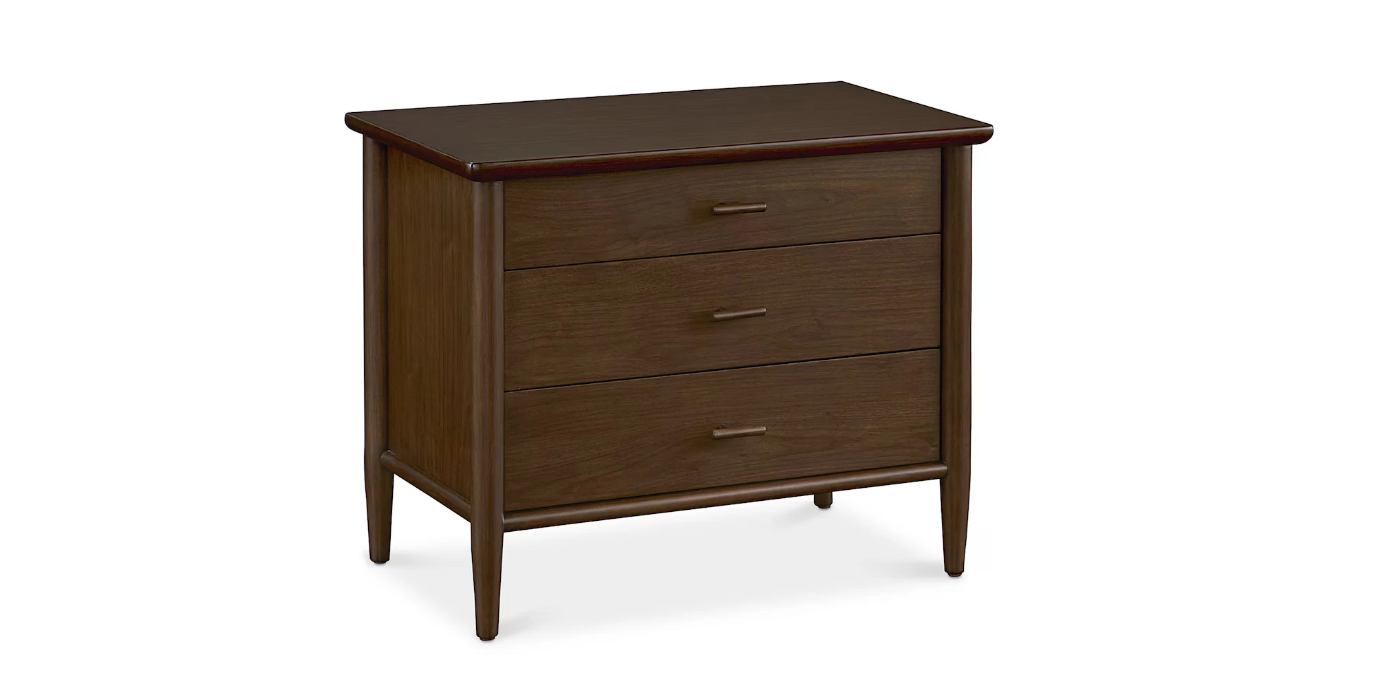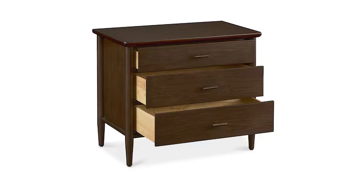 Bedroom storage is personal and the Copenhagen 3 Drawer Nightstand helps you stake your claim to personal space with style. Wearing a rich espresso finish on its sleek walnut veneer, the Copenhagen Nightstand imparts mid-century modern aplomb with its clean lines and softened edges. Three drawers hold all your overnight sundries while its generous tabletop keeps your essentials right at arm’s length – lamp, book, eyeglasses, and more. Each drawer features solid beech pulls, adding subtle emphasis to its organic design. For bedside variety, use the nightstand in conjunction with the Bedside Table or Open Nightstand from our Copenhagen Collection.