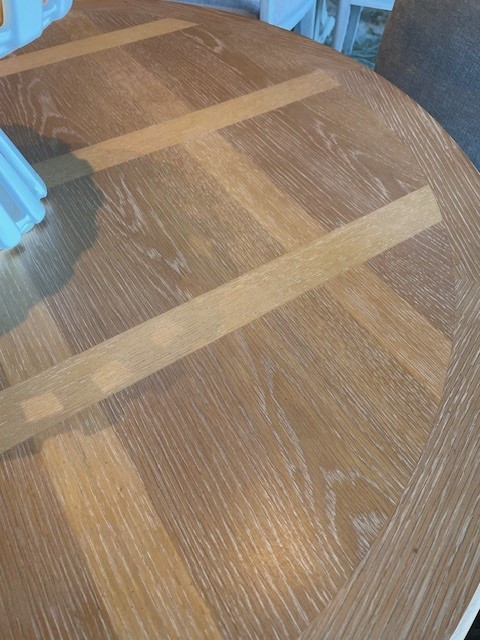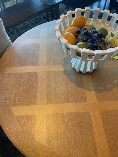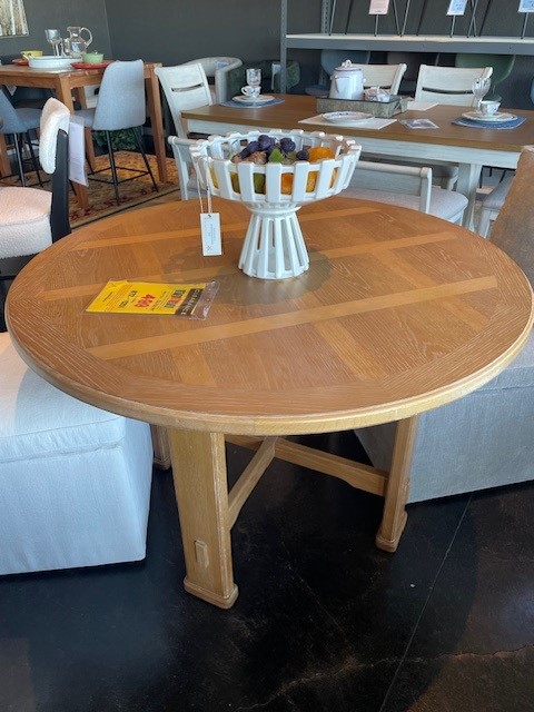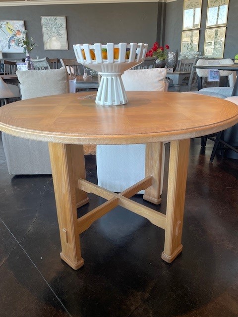 This solid wood, light colored dining table is a throwback to the sturdy craftsmanship of yore.