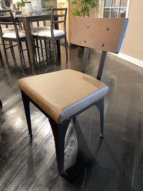 This chair brings the ultimate industrial look to your home with distressed materials, clean lines, and a minimalist aesthetic. No frills here. Just a harmonious contrast created from clean metal details that play up the warmth of aged wood, you’ll love the base with its riveted plates.