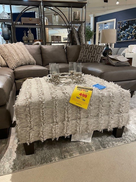 This cocktail ottoman is part of Craftmaster’s Design Options M9 program. Shown here is the Small Square Cocktail Ottoman in Zeiss-10, a gorgeous focal piece in a unique, textured fabric that is sure to stun in any room!