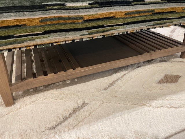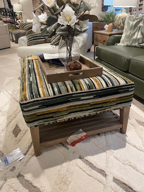 You’ll love this fabric cocktail ottoman for it’s looks, but you’ll really enjoy its functional side too. It features a plush top, slatted wood base, and handsome transitional lines. But hidden underneath is the real prize- a storage tray – perfect for snacks, beverages, or even a game. Use it anytime or all the time!