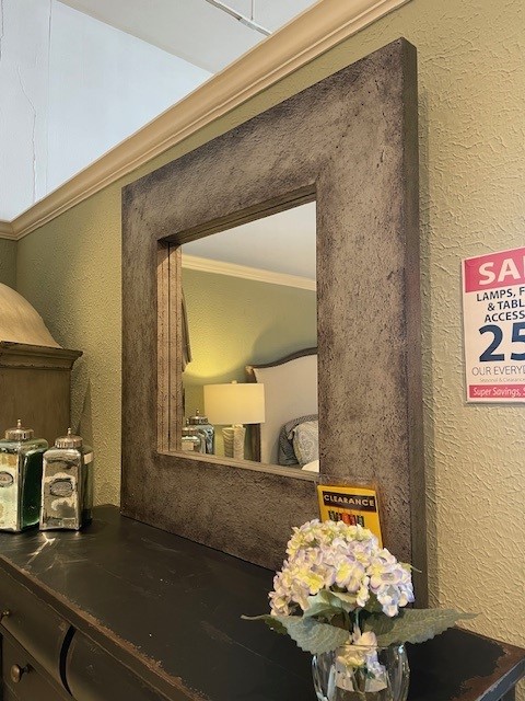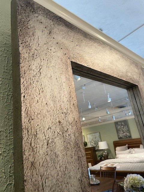 The Ciao Bella Accent Mirror by Hooker Furniture has a distressed cream finish frame accented with nailhead trim.