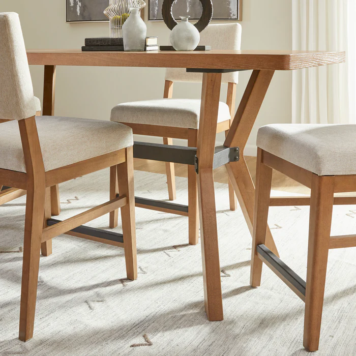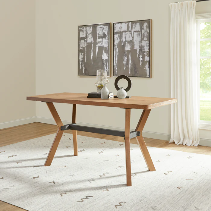 The perfect blend of modern sophistication and rustic charm, Millwork has it all. This dining table is the new centerpiece of your space, bringing the best of the classic and modern together for a truly unique character. Finished in a warm, umber wood tone that shines with a glow, this table brings personality. The standout of your next dinner party, the Millwork table can seat up to six people. Standing strong on a stylish and durable steel base detailing, this piece is the pinnacle of style and functionality.
