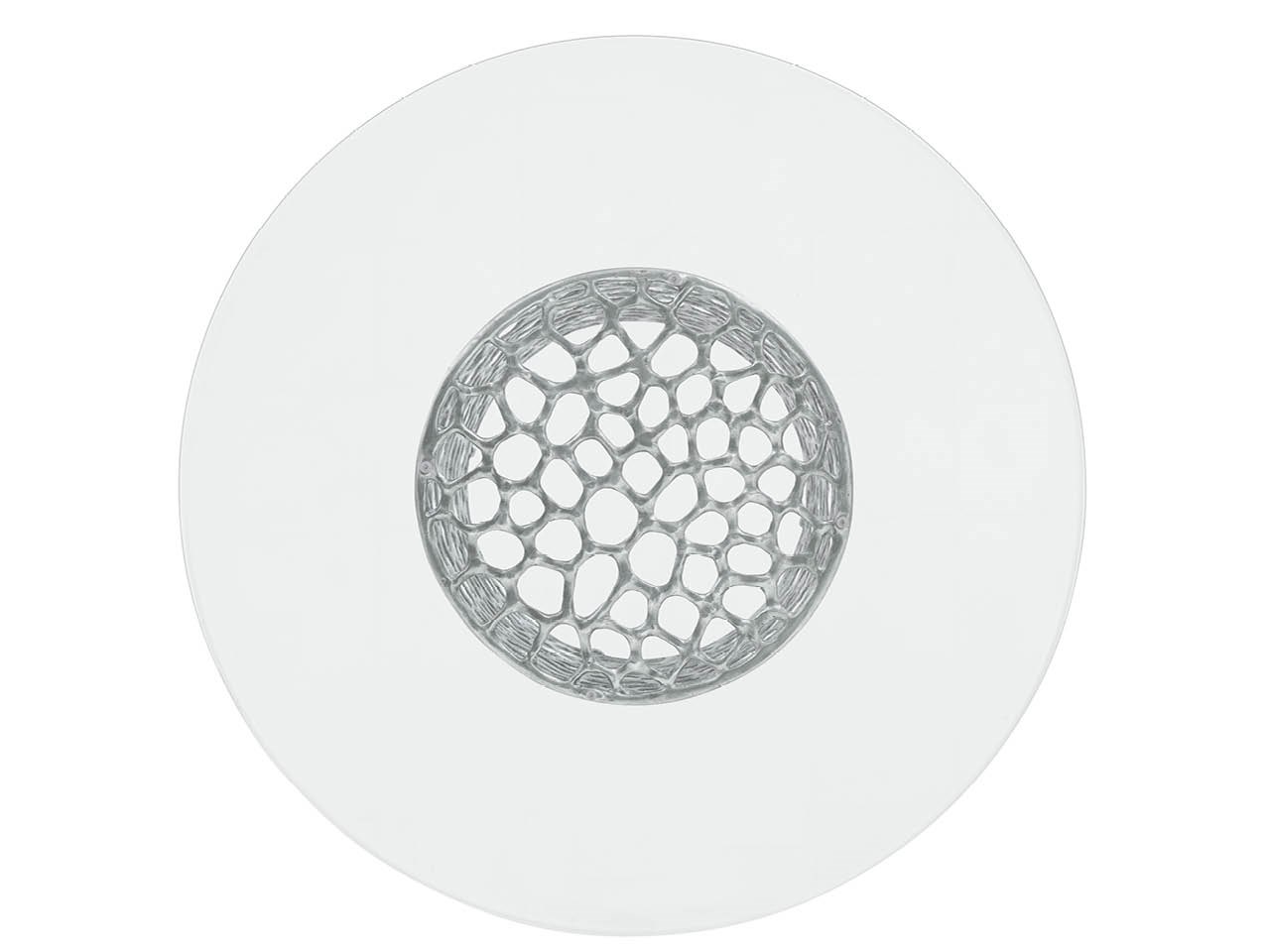 The Coral Dining Table showcases a striking 60-inch round glass top floating above a cast aluminum base with an openwork coral-inspired pattern in antique nickel. This 31-inch height dining table with its organic base design creates a dramatic focal point that brings oceanic inspiration to your coastal dining space.