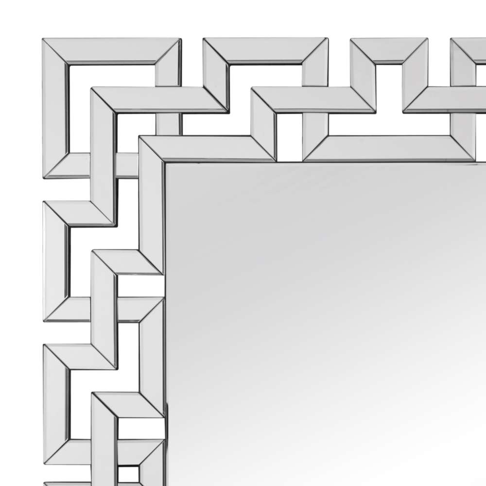 The Winslow Wall Mirror boasts a sophisticated design, reminiscent of a regal maze, with its clean modern lines and shimmering silver finish. Its geometric mirrored frame adds a touch of glamour and elegance to any home decor. Crafted with high-quality materials, this mirror features a traditional rectangular shape and a clear mirrored surface, making it a timeless and versatile piece suitable for any room in your home.