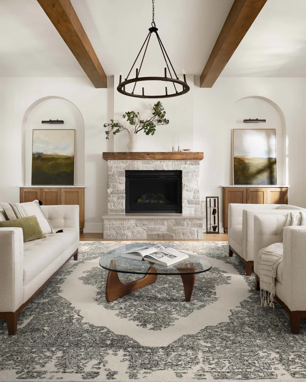 Hooked of 100% wool pile by skilled artisans in India, the Annie Collection for Magnolia Home by Joanna Gaines is acclaimed for its soft texture yet durable construction. Annie features designs that balance distressed motifs in delicate, muted colors that resonate for today’s home. Crafted by Loloi.