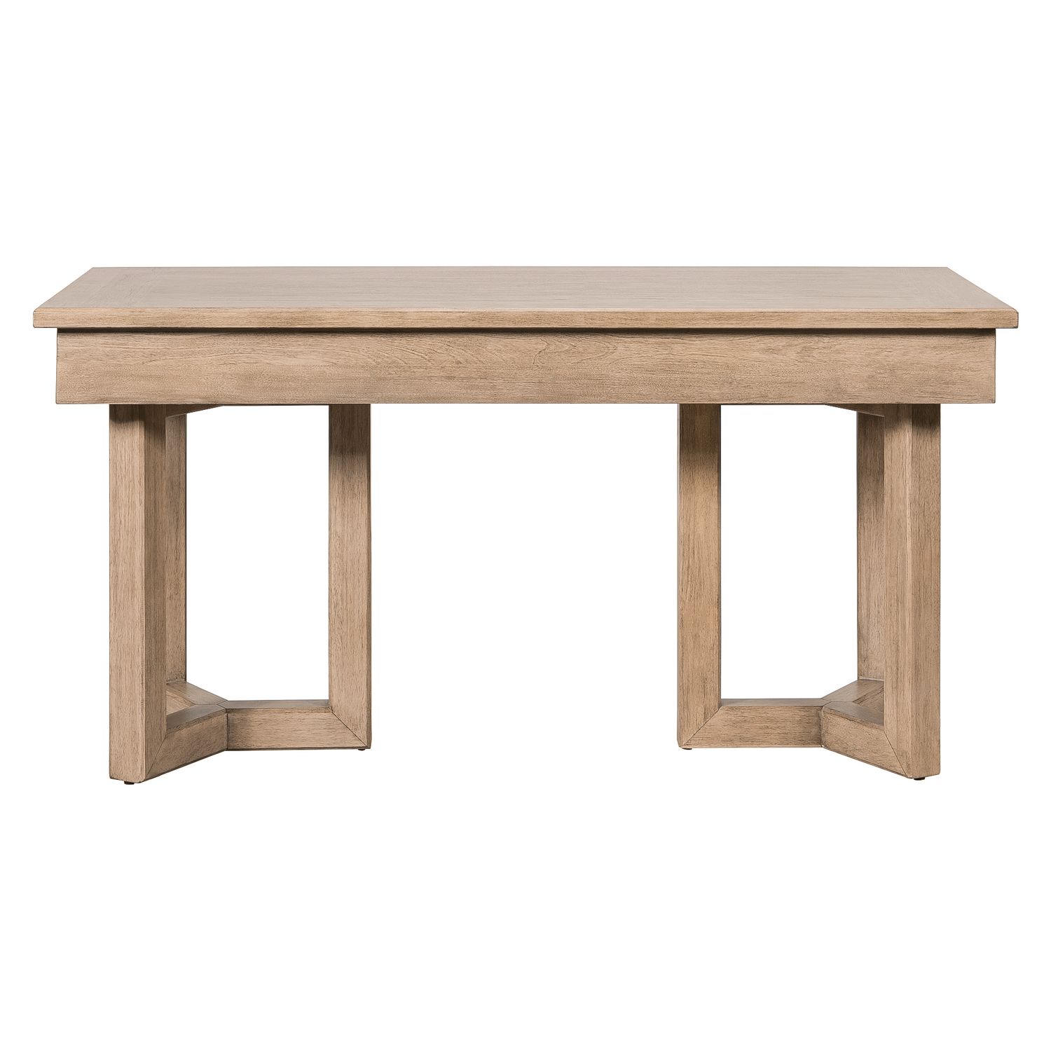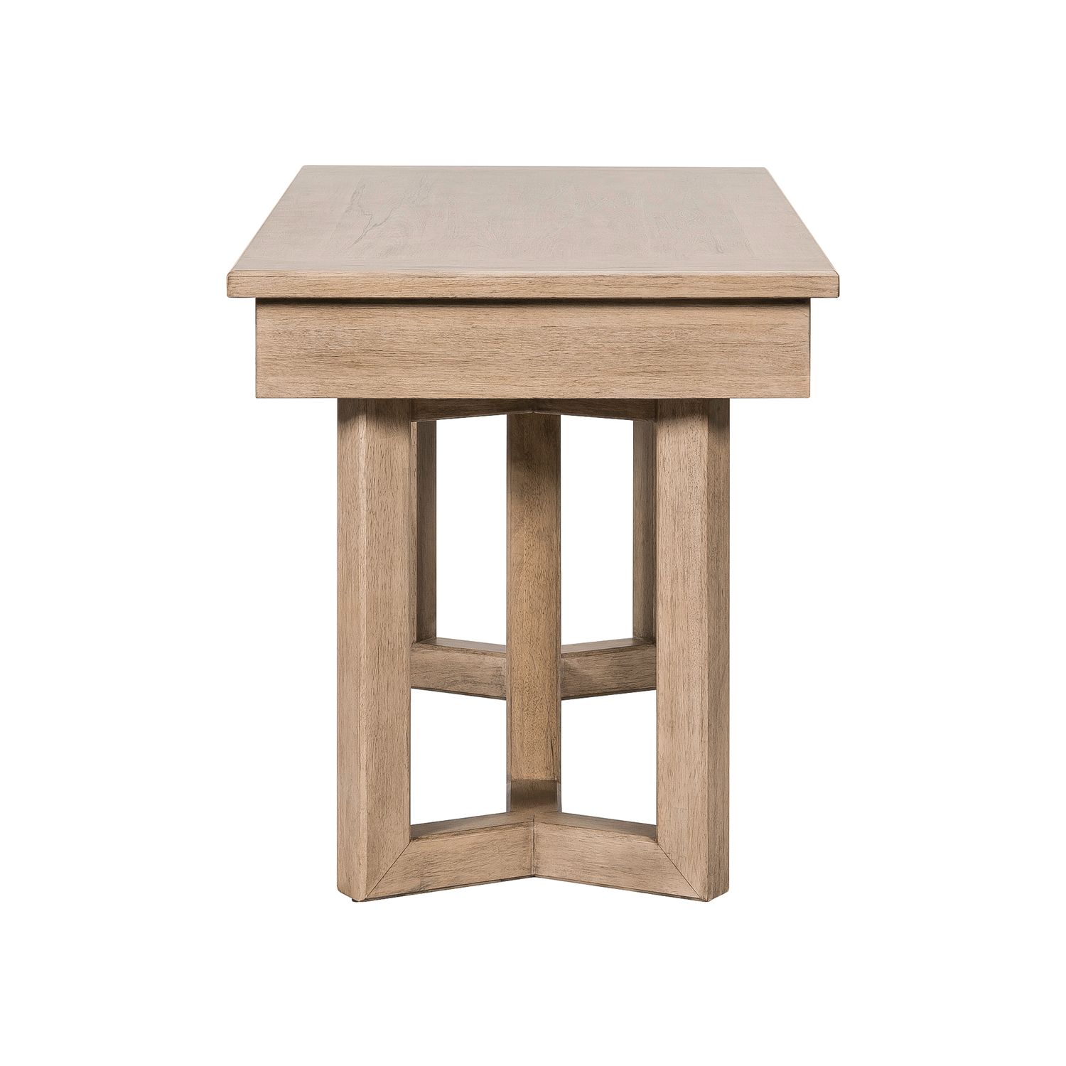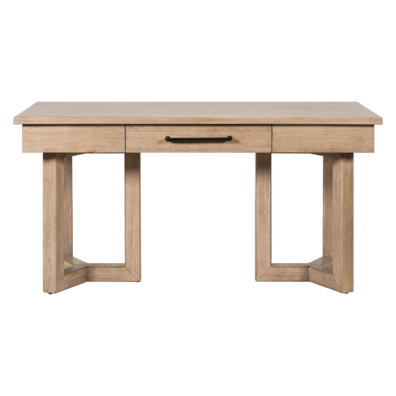 The Proximity Place Writing Desk offers a blend of rustic charm and modern design. Crafted of Rubberwood solids with Rustic Flat Cut Birch veneers in a warm Barley Buff finish, this desk features a spacious drawer for essential storage. Its standout element is the unique interlocking block leg design with chamfered edges, adding architectural interest and sturdy support. The drawer is accented with custom Dark Iron bar pull hardware, completing the look with a touch of industrial elegance—perfect for a stylish and functional workspace.