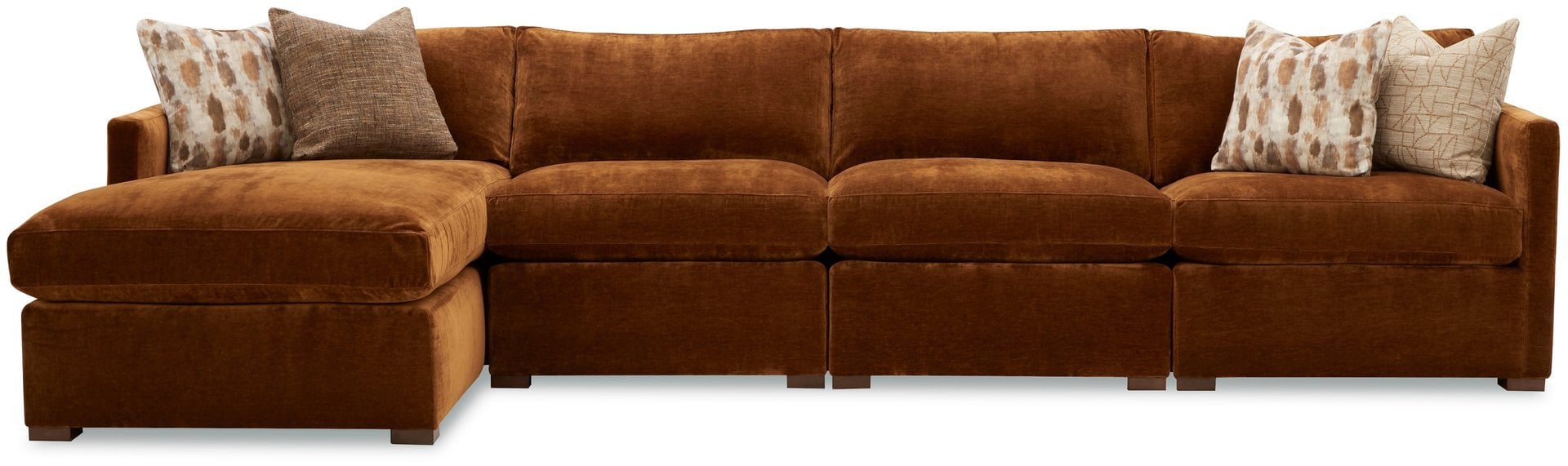 Designed for ultimate versatility and comfort, this modular sectional features clean track arms, French seaming, and low block legs for a modern, tailored look. Loose box border backs and our Super Soft seating package—featuring luxuriously soft seats, backs, and toss pillows—invite you to relax in style.