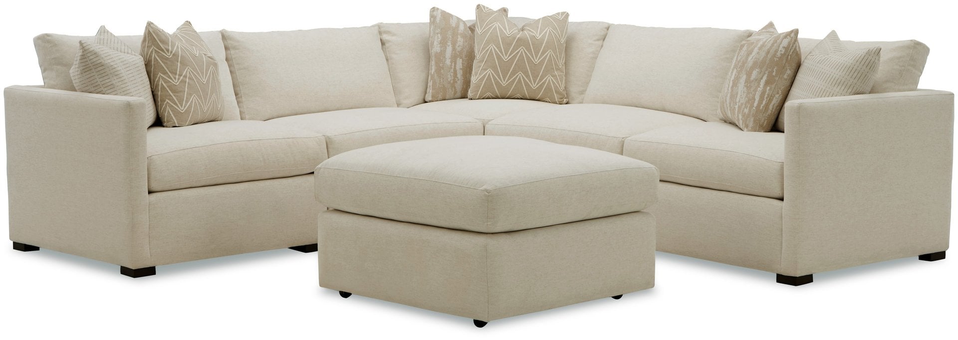 Every piece is fully finished on all sides, allowing it to stand beautifully on its own or connect seamlessly with others. A wide-width chaise adds an extra layer of lounge-worthy comfort. A matching bumper ottoman with casters (style 751001SS) can be used as a cocktail ottoman or can be pushed up to the sectional for a perfect fit.