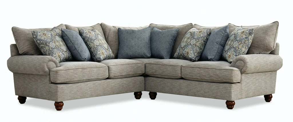 One of our all-time best sellers, this sectional has lots of style and with it’s generous scale, it has room for the whole family! It features loose pillow backs and loads of accent pillows, along with turned legs and a set-back paneled roll arm. But the comfort is what will win you over- deep and plush, this sofa uses our premium cushion and backs to give you a perfect place for relaxing at home. Matching sofa, loveseat, chair and ottoman available as well. Depth 44″ (111.8 cm) Height 43″ (109.2 cm)
