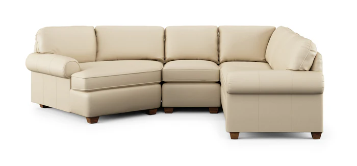 Showcase your home with the timeless charm of the Thornton sectional. Smoothly rolled edges and arms, tapered block legs, and a welt-corded trim make it the quintessential living area piece. Offered in a wide range of components and a choice of leather or Kashmira, this sectional provides the style, comfort and creativity for any home – making it one of our long-time best sellers.