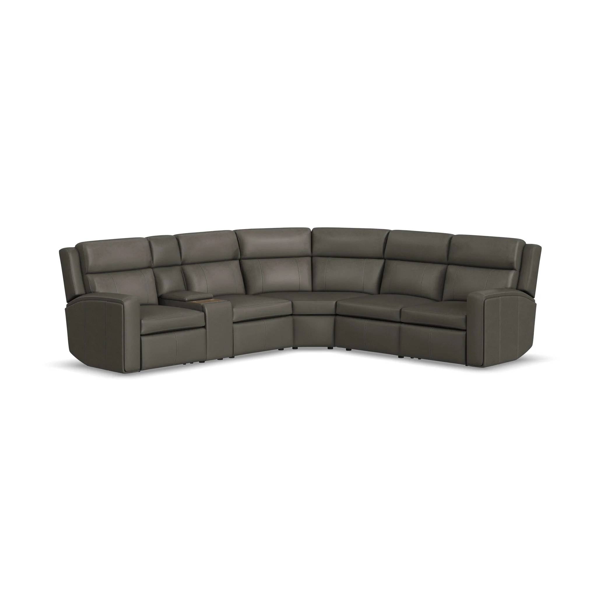 For enduring, simplified indulgence for the whole family, look no further than the Wyatt power reclining sectional. We’ve streamlined our prime modern relaxation innovations into this sectional for all the luxury you need in a simple package. The wide, transitional style track arms cradle the whole family as Wyatt’s power control empowers you to customize your Zero Gravity recline for a weightless feel. Need a place to kick back and scroll? Wyatt’s console has a charging tray to keep your devices charged and within reach. The Wyatt sectional, your everyday downtime destination.
